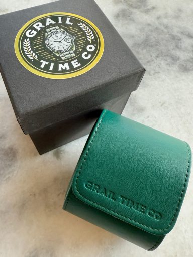Comes as full set with inner and outer boxes, 2021 warranty card, card holder, barcode hangtag, booklets, full links and a Grail Time Co leather watch roll.